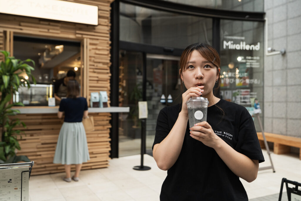お腹が満たされたら、2025年7月にオープンした新顔「TAKE COFFEE」さんへ。